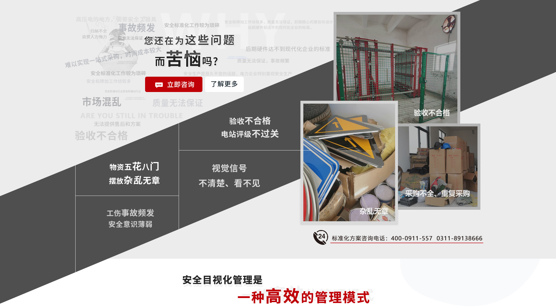 華泰安全目視化管理以安全法律、法規(guī)、標(biāo)準(zhǔn)和危害識(shí)別風(fēng)險(xiǎn)評(píng)價(jià)為基礎(chǔ),運(yùn)用標(biāo)識(shí)警示、6S管理、看板管理、定置管理等方法,結(jié)合企業(yè)VI、生產(chǎn)的特點(diǎn)、安全管理現(xiàn)狀,將各方內(nèi)容融合,策劃一套系統(tǒng)的安全目視化管理解決方案。